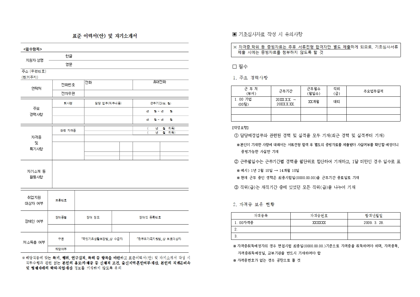 3️⃣ 표준이력서(안) 및 자기소개서 작성 전에 꼭 알아야 할 내용들!